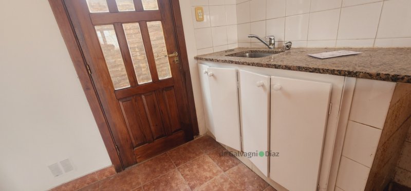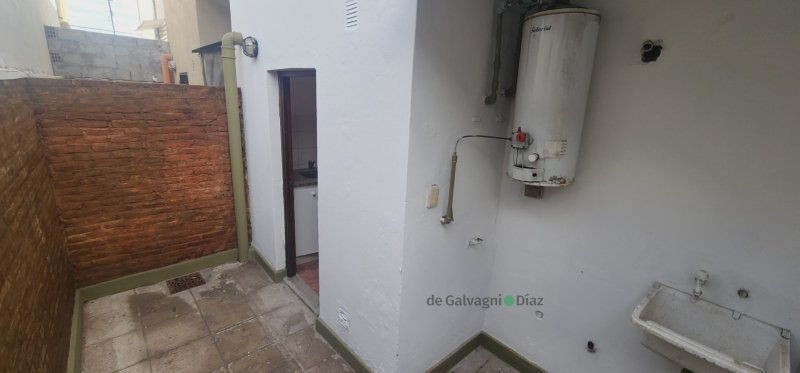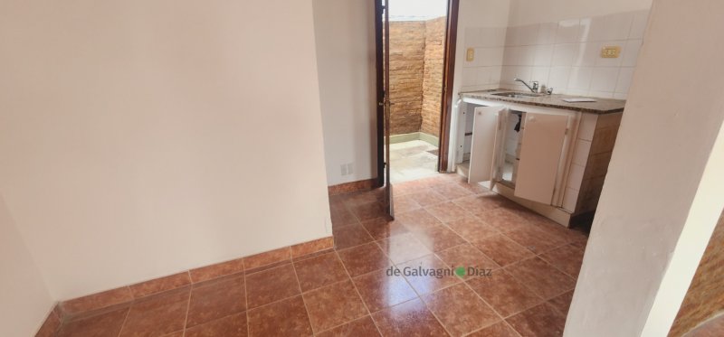 living - comedor, cocina integrada, pequeño patio de cemento con lavadero,