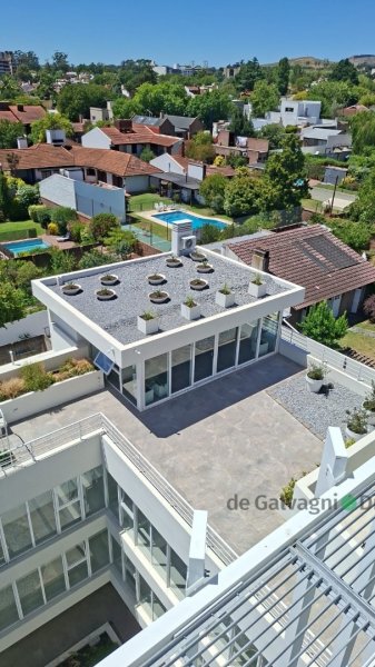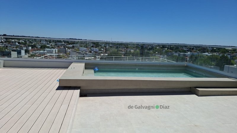 Cuenta con un subsuelo con treinta y cuatro cocheras, adem?s de bauleras, varios espacios verdes, bicicletero, terrazas con parrilla, SUM, piscina y paneles solares, entre otras caracter?sticas.